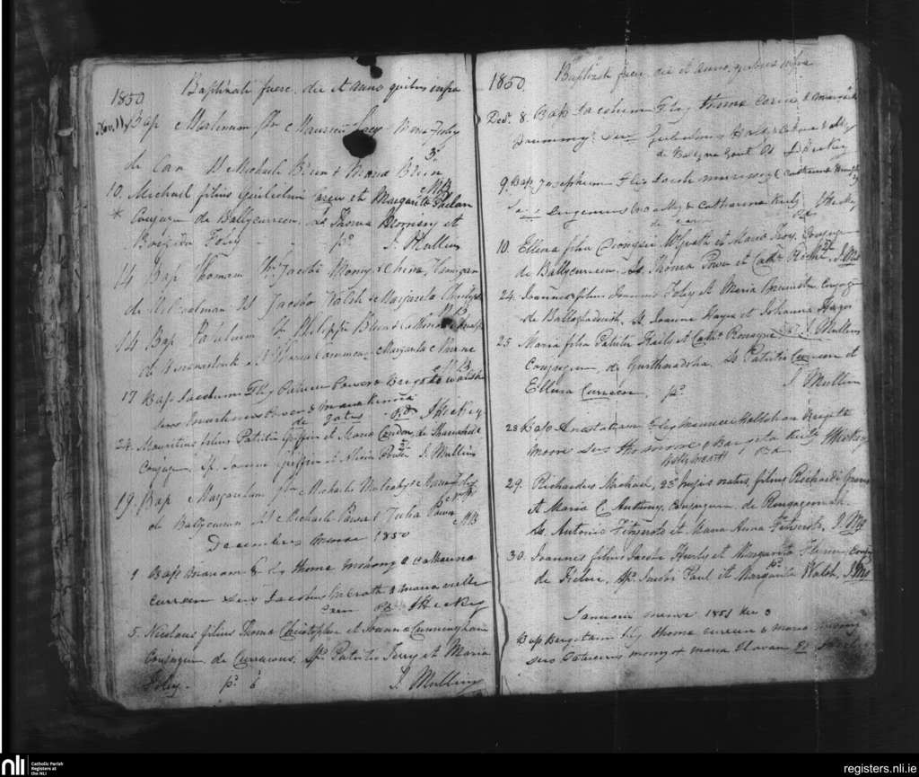 Old and Ring; County of Waterford; Diocese of Waterford and Lismore. Baptisms, Nov. 1850 to Jan. 1851