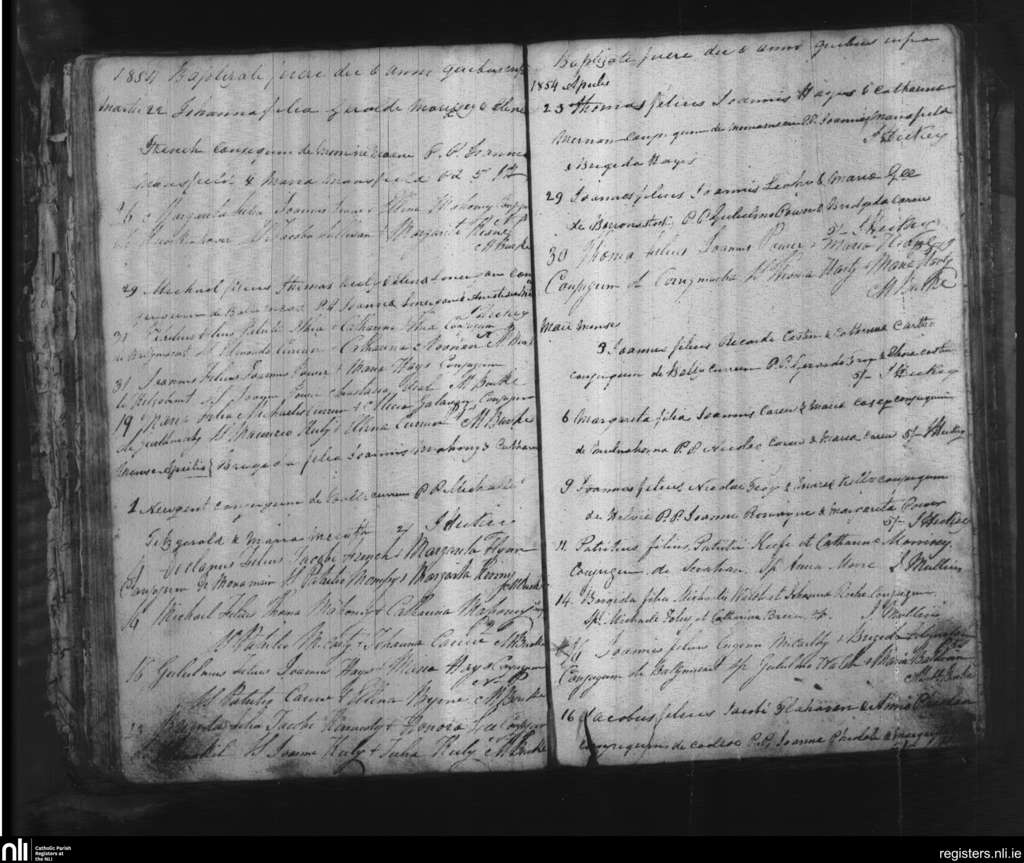 Old and Ring; County of Waterford; Diocese of Waterford and Lismore. Baptisms, Mar. 1854 to May 1854