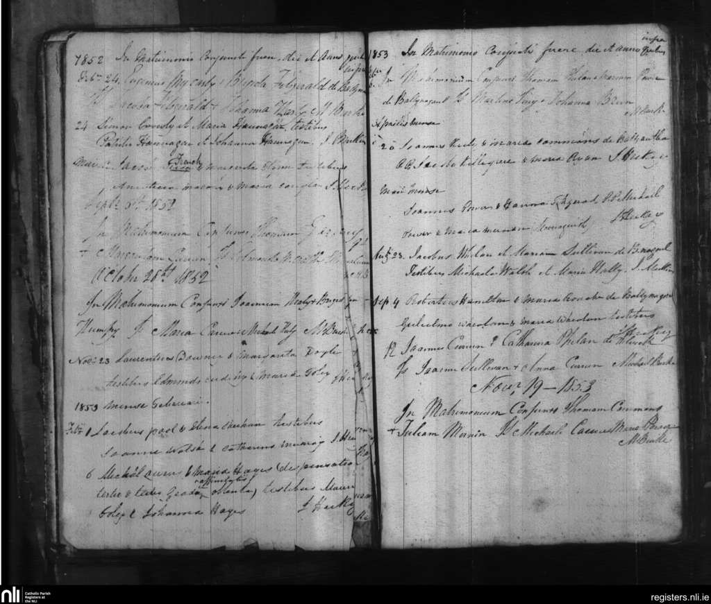 Old and Ring; County of Waterford; Diocese of Waterford and Lismore. Marriages, Feb. 1852 to Nov. 1853