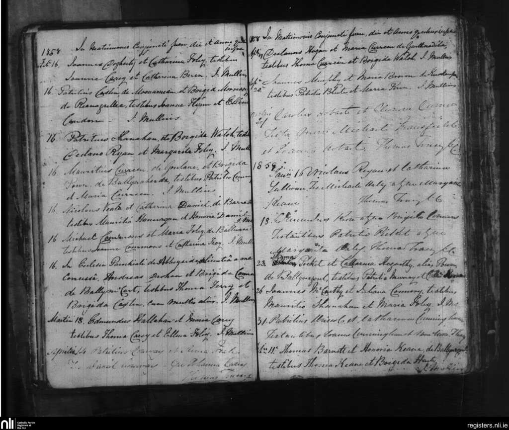 Old and Ring; County of Waterford; Diocese of Waterford and Lismore. Marriages, Feb. 1858 to Feb. 1859
