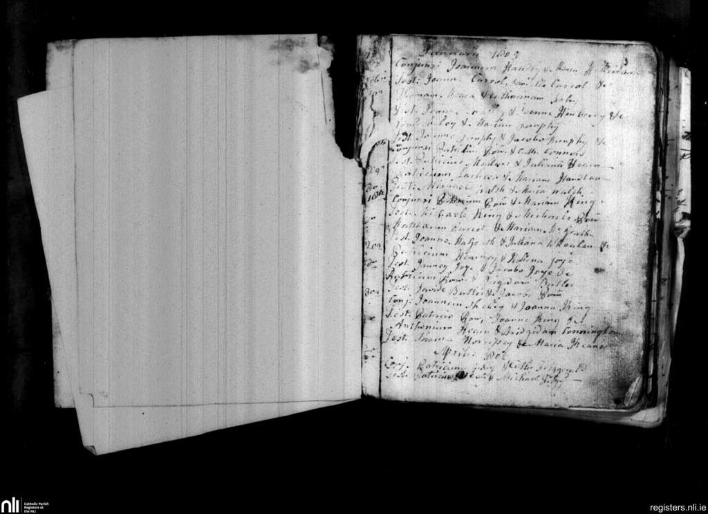 Portlaw; County of Waterford; Diocese of Waterford and Lismore. Marriages, Jan. 1805 to Apr. 1806