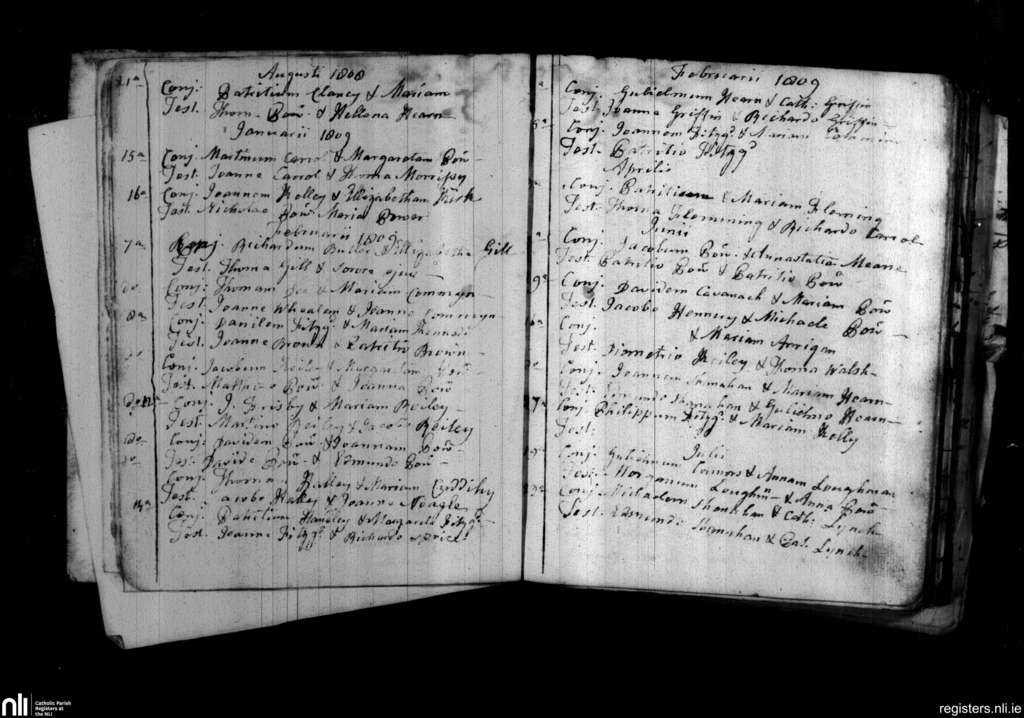 Portlaw; County of Waterford; Diocese of Waterford and Lismore. Marriages, Aug. 1808 to July 1809