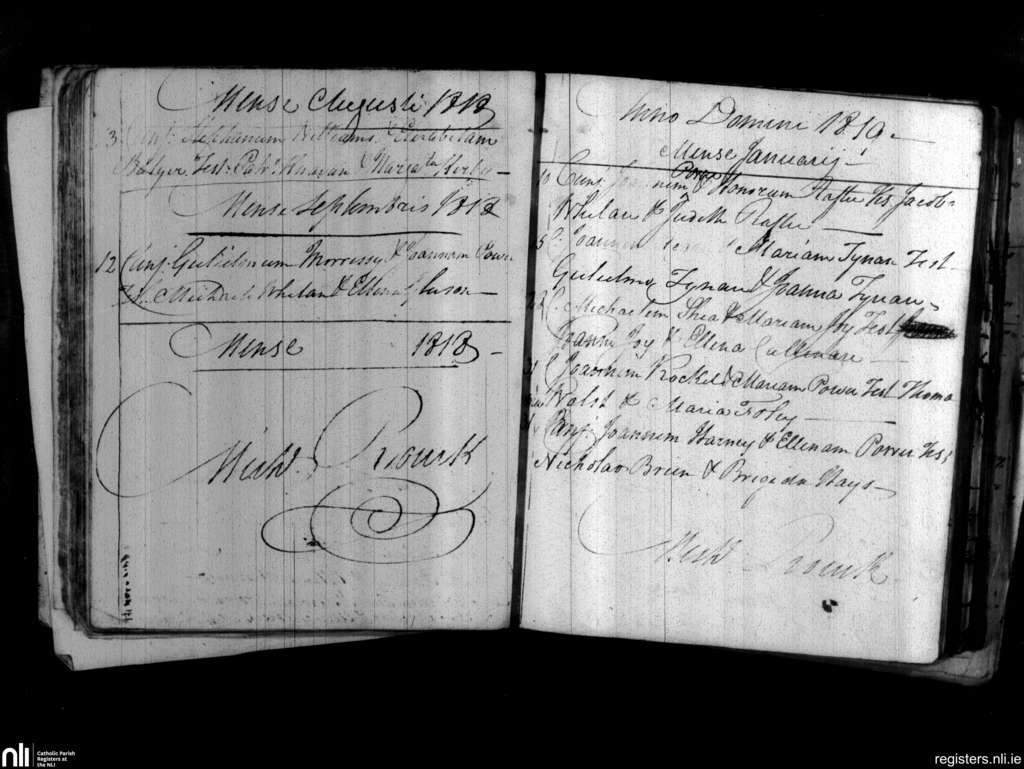 Portlaw; County of Waterford; Diocese of Waterford and Lismore. Marriages, Aug. 1818 to Jan. 1819