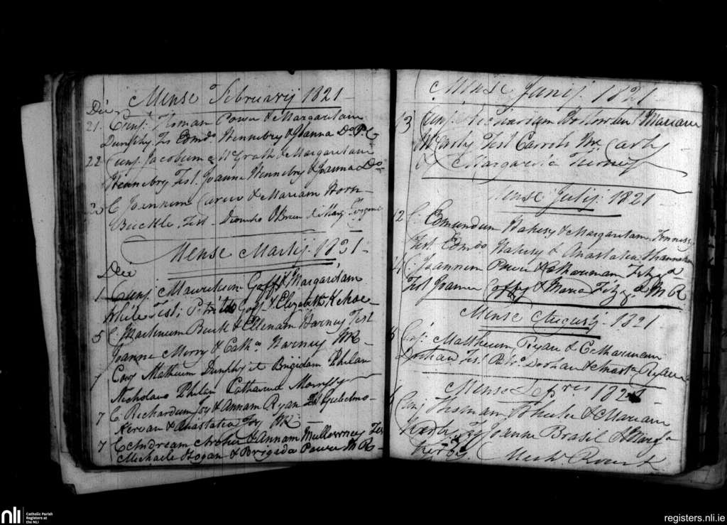 Portlaw; County of Waterford; Diocese of Waterford and Lismore. Marriages, Feb. 1821 to Sep. 1821