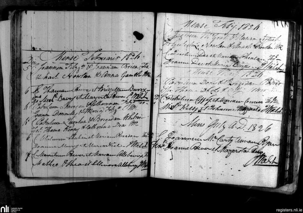 Portlaw; County of Waterford; Diocese of Waterford and Lismore. Marriages, Feb. 1826 to July 1826
