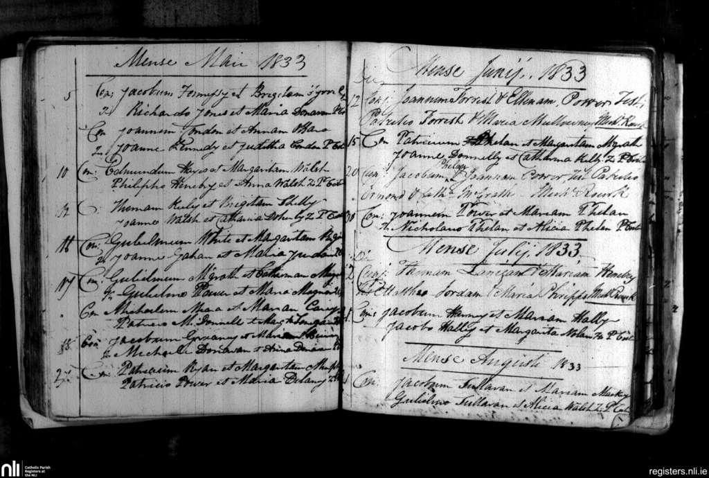 Portlaw; County of Waterford; Diocese of Waterford and Lismore. Marriages, May 1833 to Aug. 1833