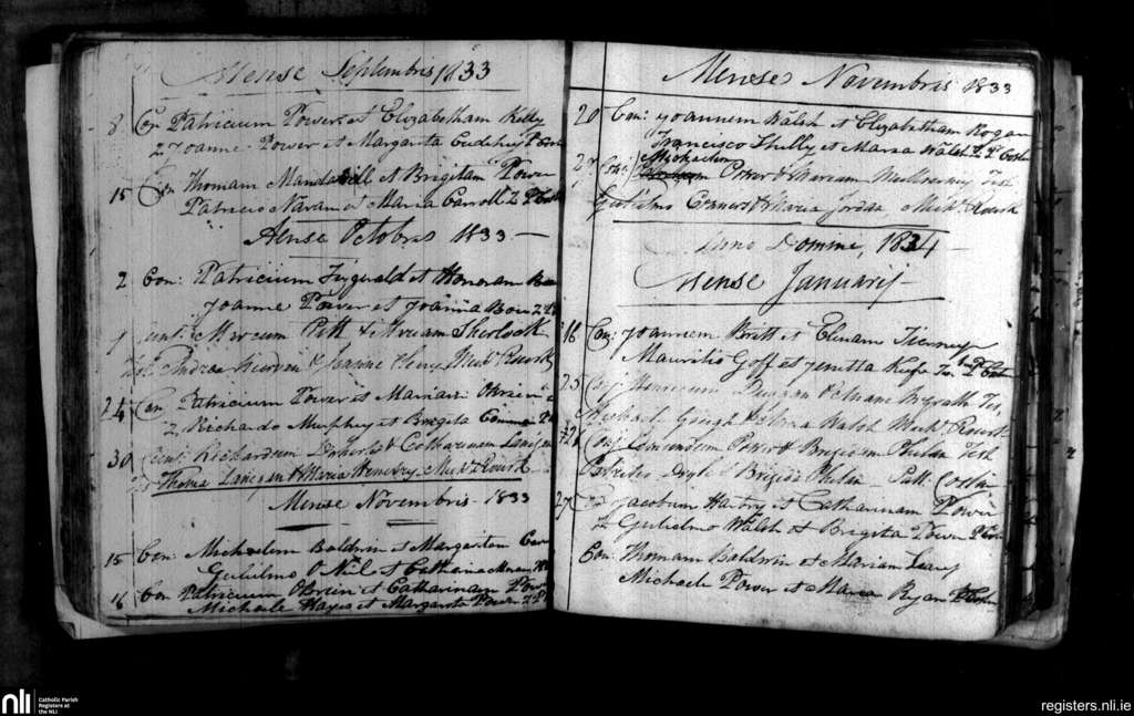 Portlaw; County of Waterford; Diocese of Waterford and Lismore. Marriages, Sep. 1833 to Jan. 1834