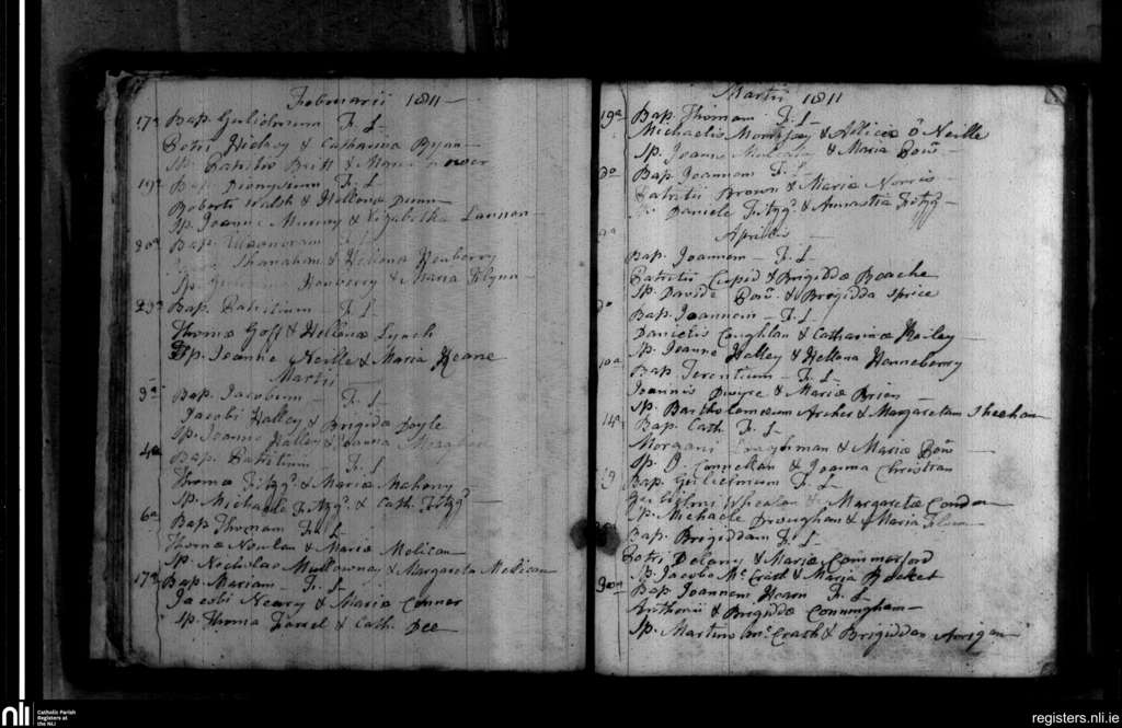 Portlaw; County of Waterford; Diocese of Waterford and Lismore. Baptisms, Feb. 1811 to Apr. 1811