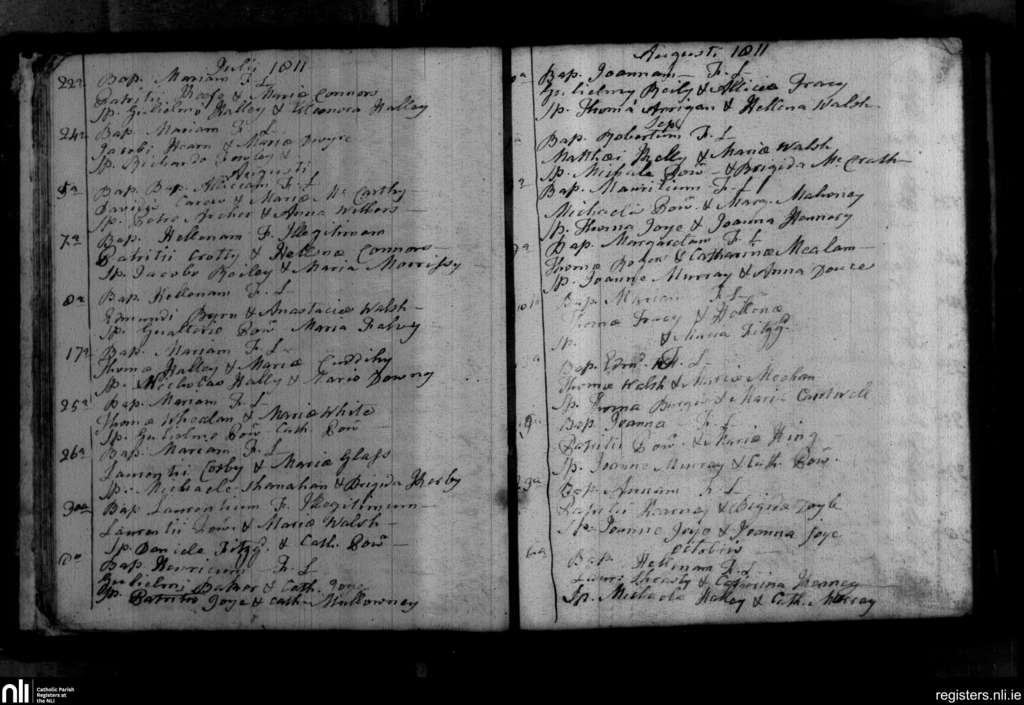 Portlaw; County of Waterford; Diocese of Waterford and Lismore. Baptisms, July 1811 to Oct. 1811