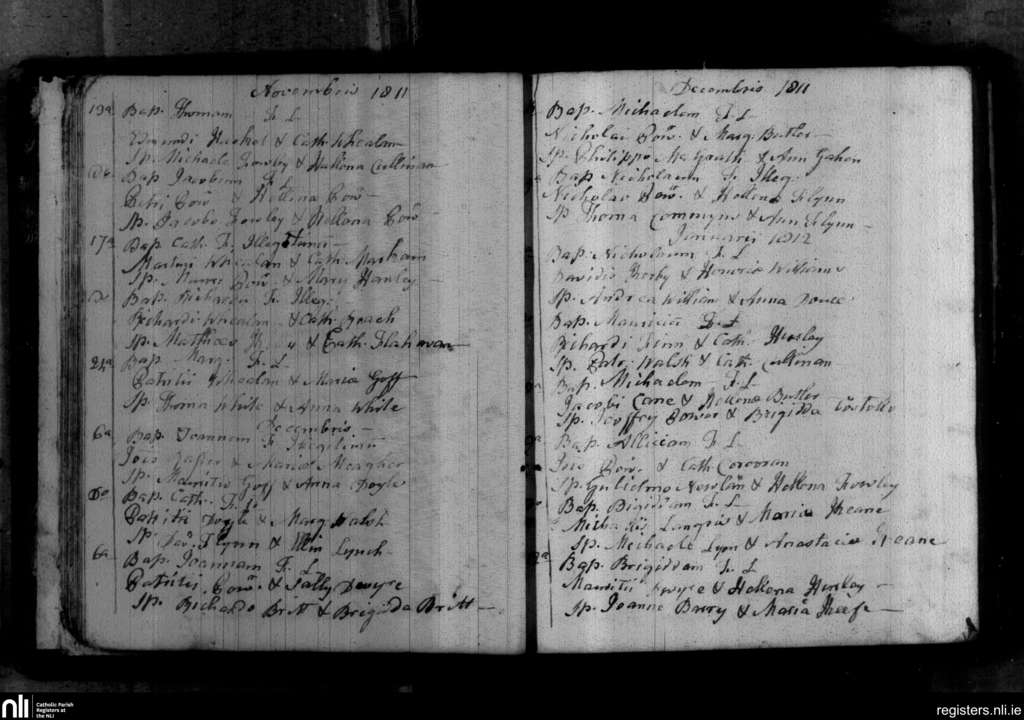 Portlaw; County of Waterford; Diocese of Waterford and Lismore. Baptisms, Nov. 1811 to Jan. 1812