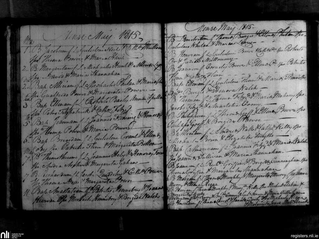 Portlaw; County of Waterford; Diocese of Waterford and Lismore. Baptisms, May 1815