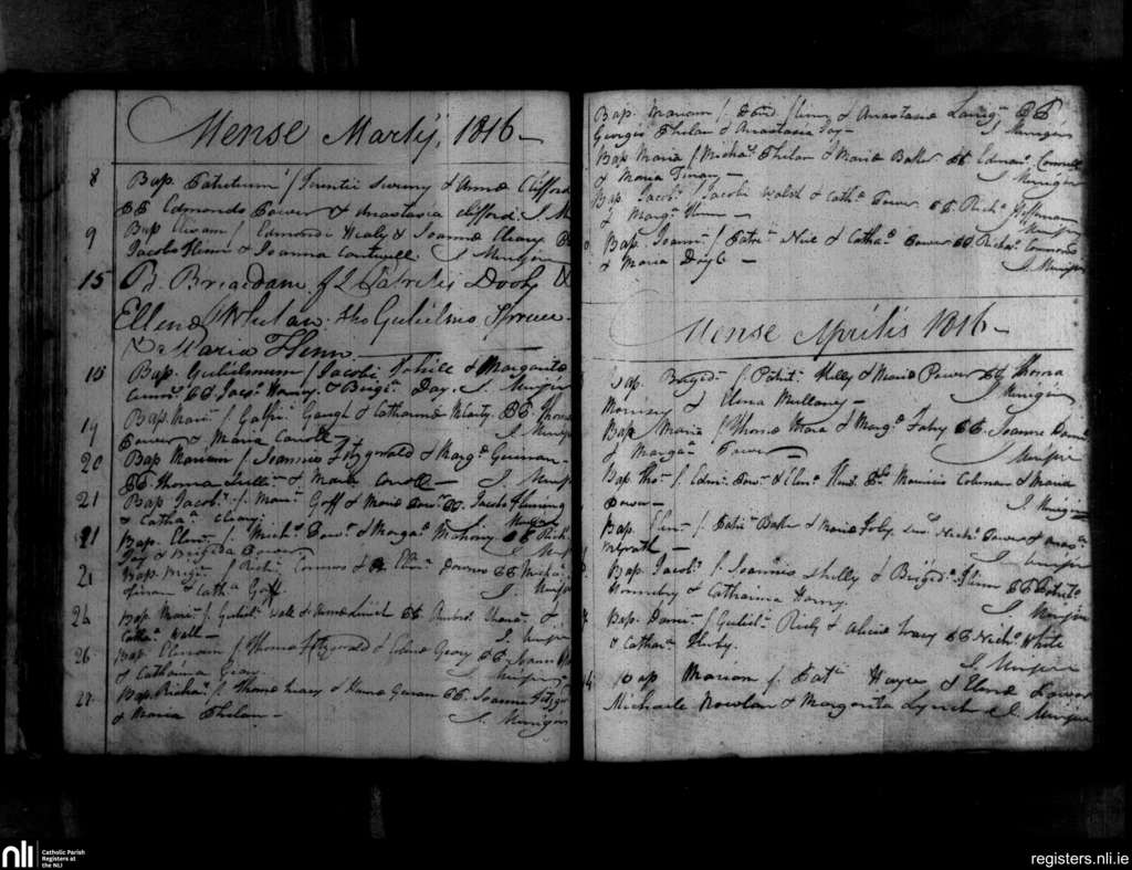 Portlaw; County of Waterford; Diocese of Waterford and Lismore. Baptisms, Mar. 1816 to Apr. 1816