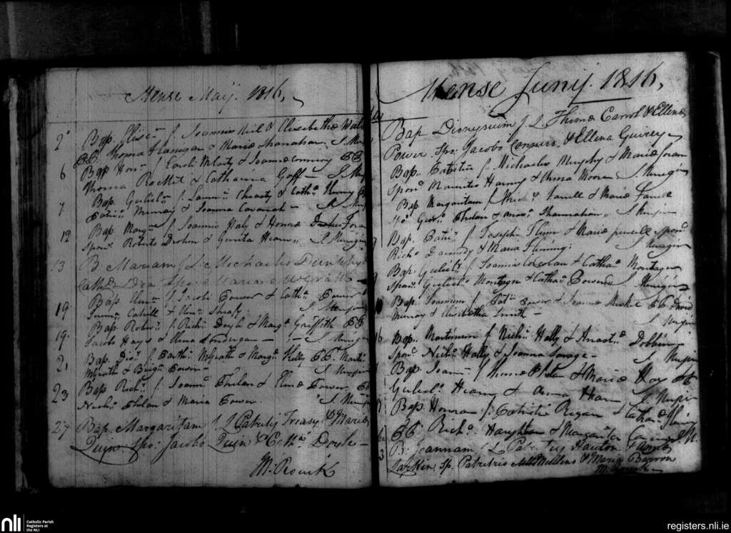 Portlaw; County of Waterford; Diocese of Waterford and Lismore. Baptisms, May 1816 to June 1816