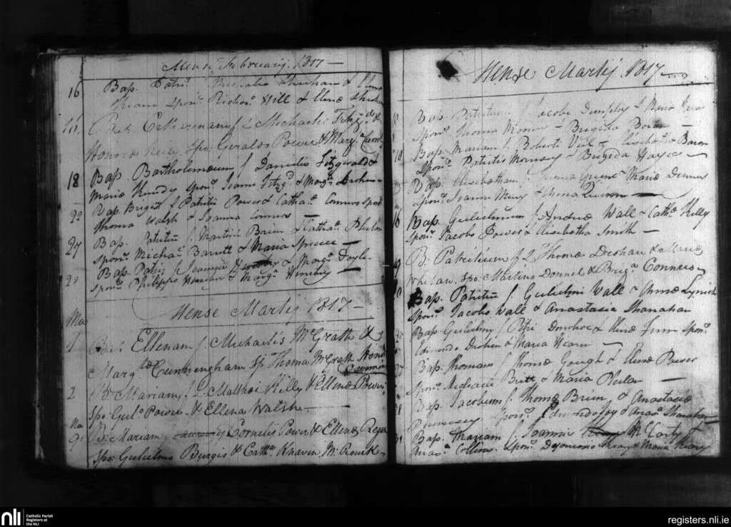 Portlaw; County of Waterford; Diocese of Waterford and Lismore. Baptisms, Feb. 1817 to Mar. 1817