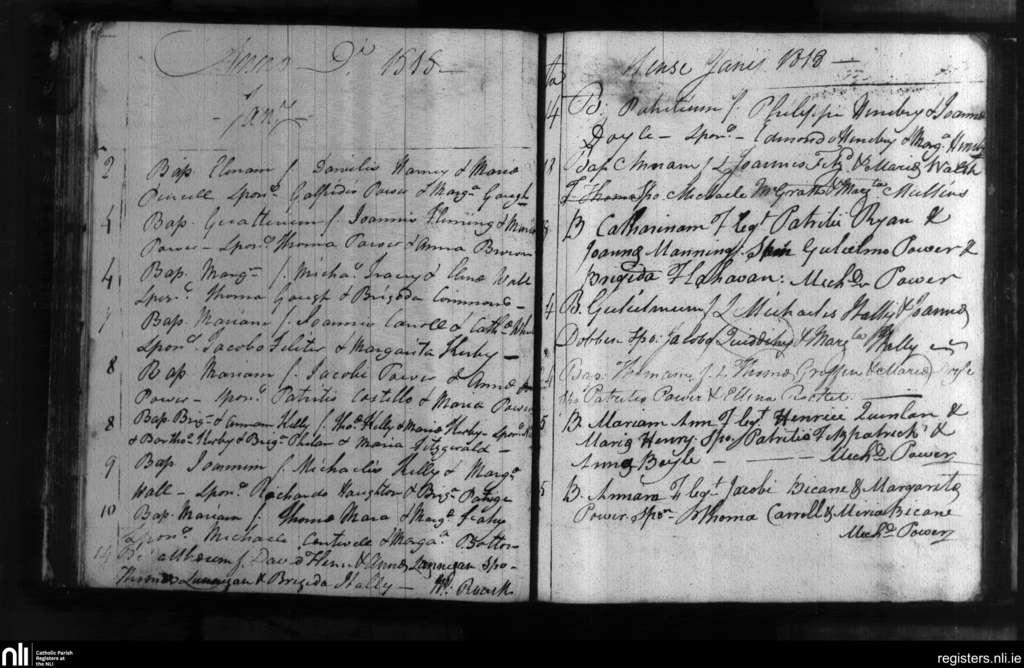 Portlaw; County of Waterford; Diocese of Waterford and Lismore. Baptisms, Jan. 1818