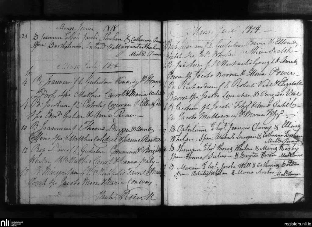 Portlaw; County of Waterford; Diocese of Waterford and Lismore. Baptisms, June 1818 to July 1818