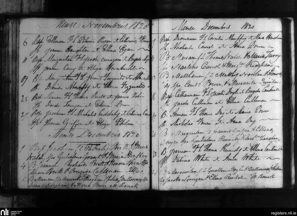 Portlaw; County of Waterford; Diocese of Waterford and Lismore. Baptisms, Nov. 1820 to Dec. 1820