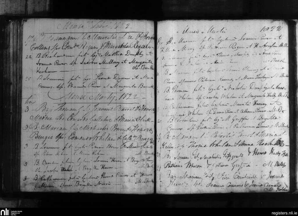 Portlaw; County of Waterford; Diocese of Waterford and Lismore. Baptisms, Feb. 1822 to Mar. 1822