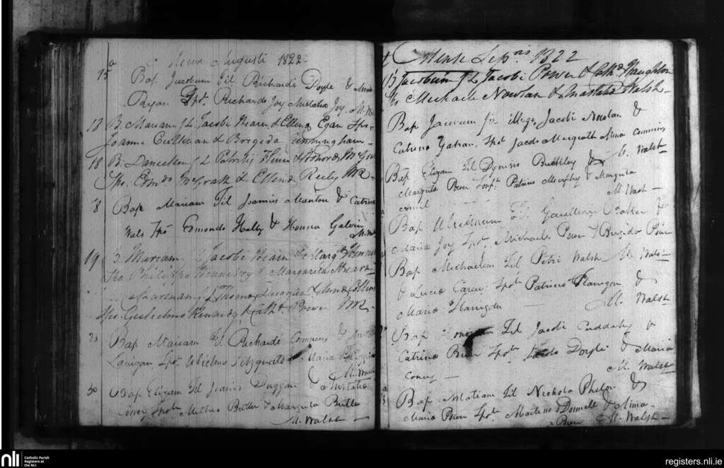 Portlaw; County of Waterford; Diocese of Waterford and Lismore. Baptisms, Aug. 1822 to Sep. 1822