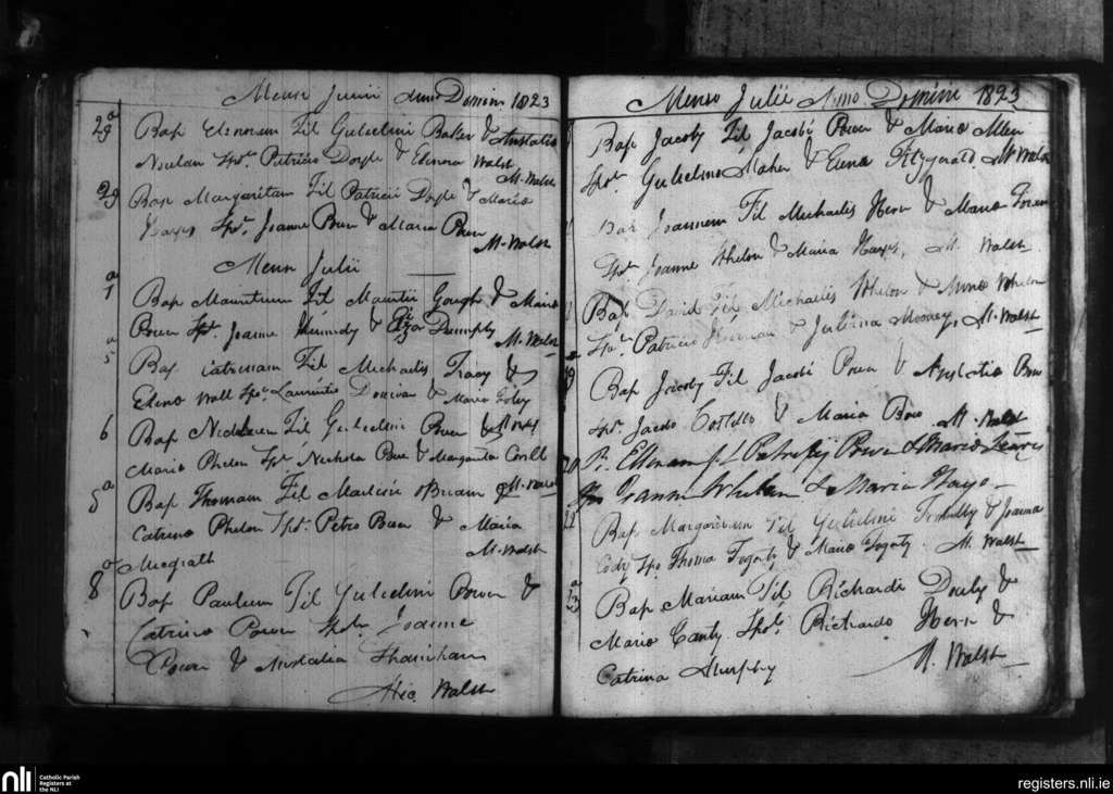 Portlaw; County of Waterford; Diocese of Waterford and Lismore. Baptisms, June 1823 to July 1823