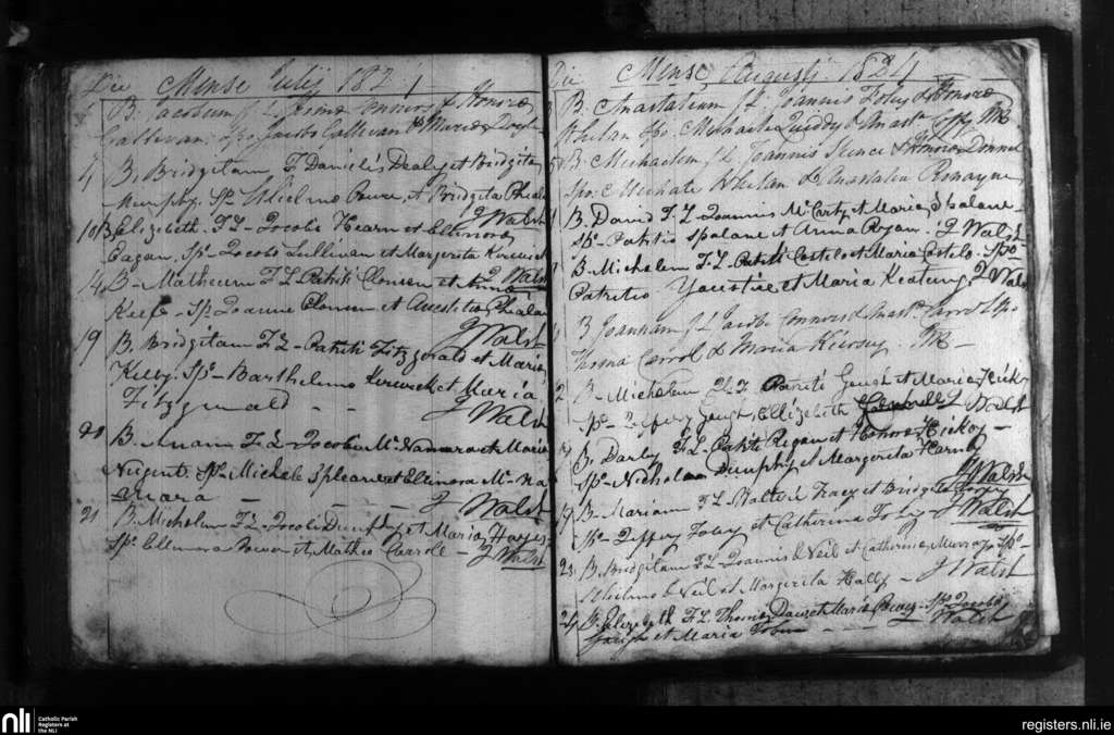 Portlaw; County of Waterford; Diocese of Waterford and Lismore. Baptisms, July 1824 to Aug. 1824
