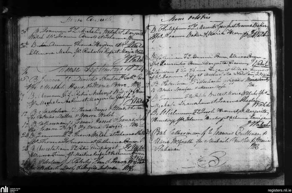 Portlaw; County of Waterford; Diocese of Waterford and Lismore. Baptisms, Aug. 1824 to Oct. 1824