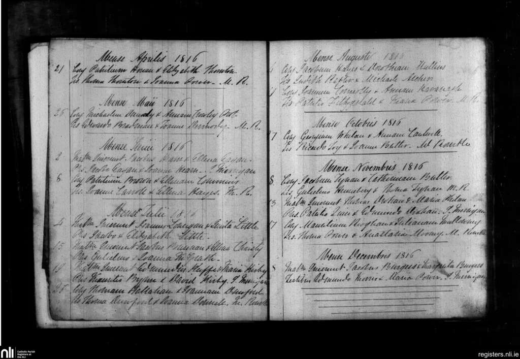 Portlaw; County of Waterford; Diocese of Waterford and Lismore. Marriages, Apr. 1816 to Dec. 1816