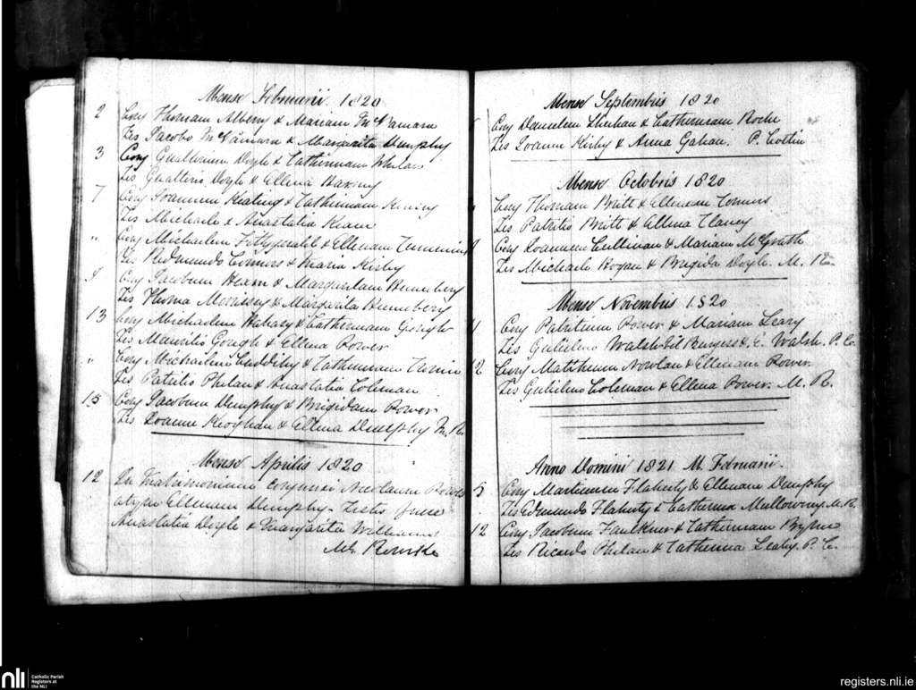 Portlaw; County of Waterford; Diocese of Waterford and Lismore. Marriages, Feb. 1820 to Feb. 1821