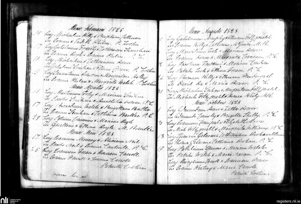 Portlaw; County of Waterford; Diocese of Waterford and Lismore. Marriages, Feb. 1828 to Oct. 1828