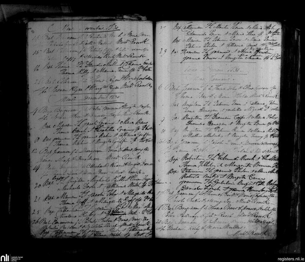 Portlaw; County of Waterford; Diocese of Waterford and Lismore. Baptisms, Nov. 1830 to Jan. 1831