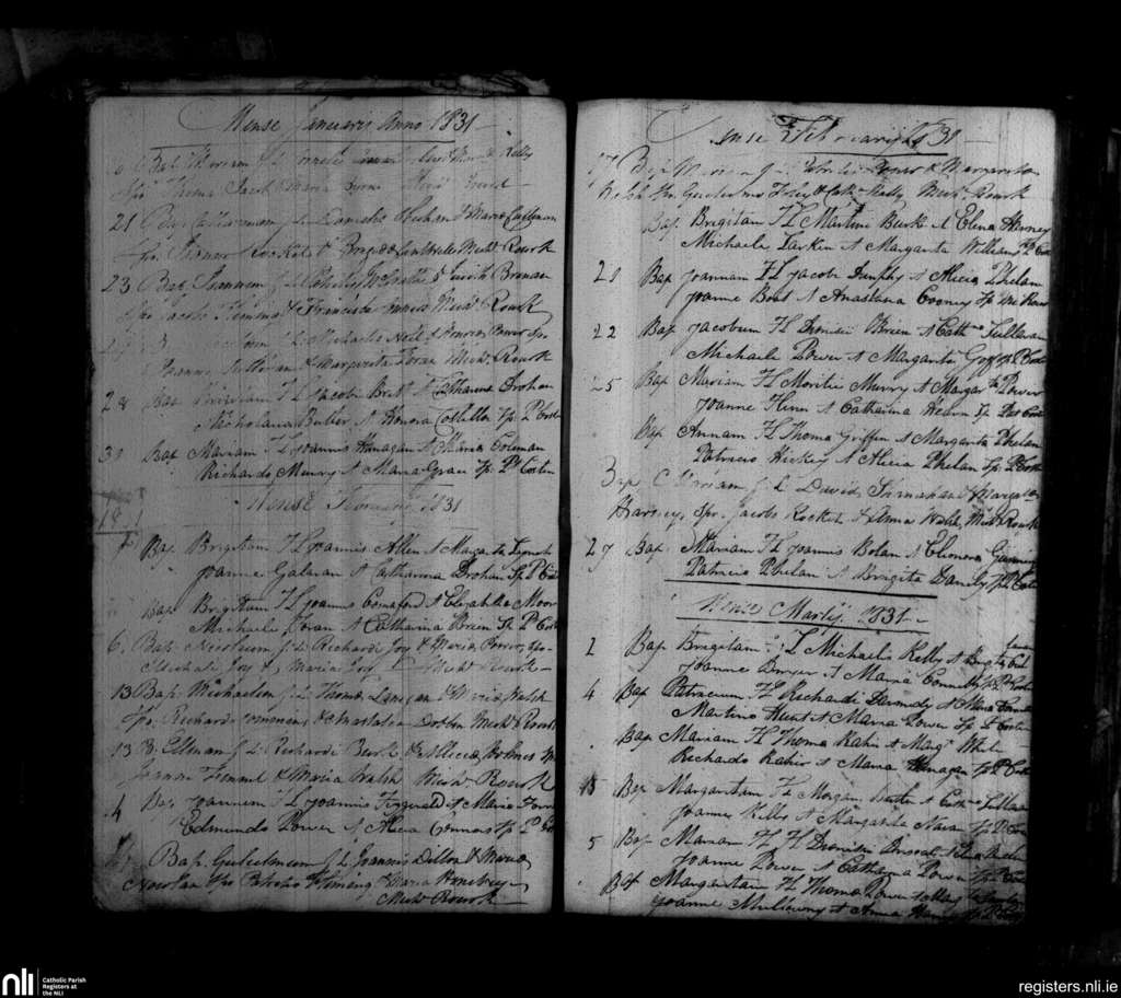 Portlaw; County of Waterford; Diocese of Waterford and Lismore. Baptisms, Jan. 1831 to Mar. 1831