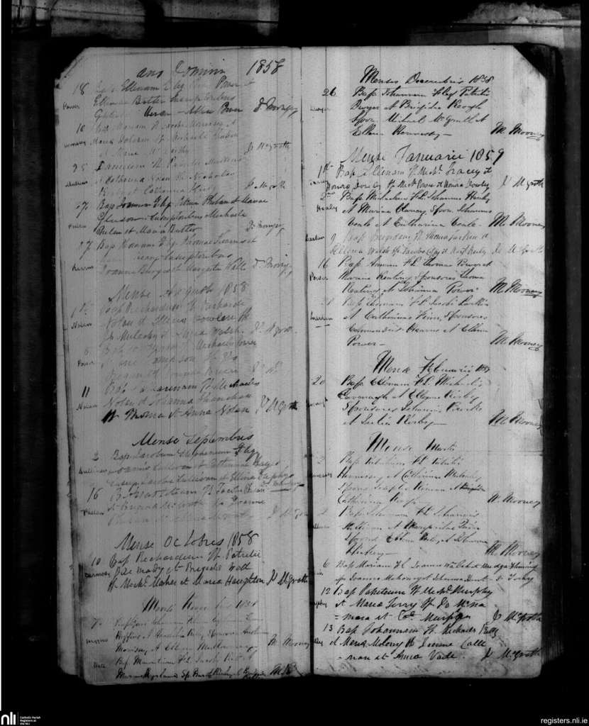 Portlaw; County of Waterford; Diocese of Waterford and Lismore. Baptisms, July 1858 to Mar. 1859