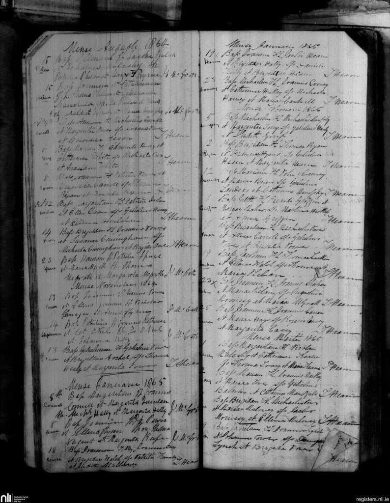 Portlaw; County of Waterford; Diocese of Waterford and Lismore. Baptisms, Aug. 1864 to Mar. 1865