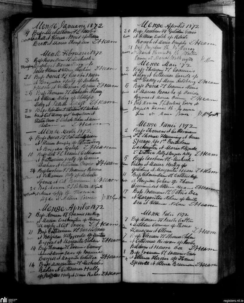 Portlaw; County of Waterford; Diocese of Waterford and Lismore. Baptisms, Jan. 1872 to July 1872