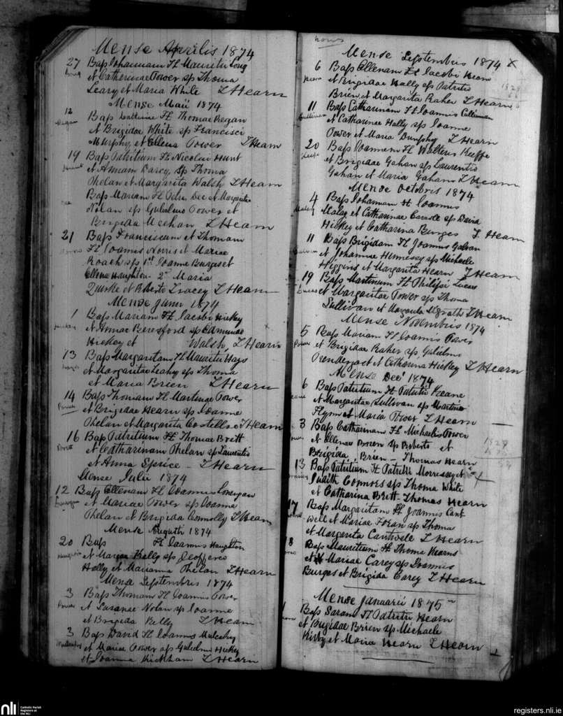 Portlaw; County of Waterford; Diocese of Waterford and Lismore. Baptisms, Apr. 1874 to Jan. 1875