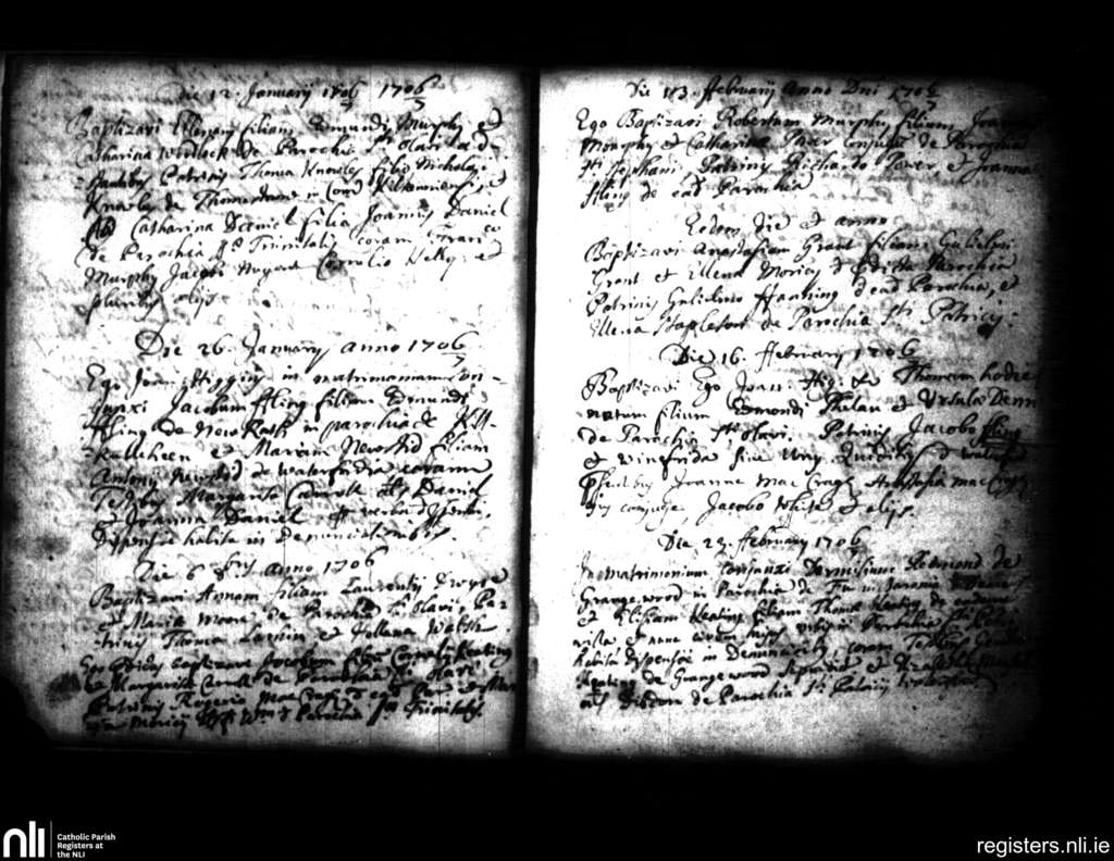 St. John's, Waterford city; County of Waterford; Diocese of Waterford and Lismore. Baptisms, Marriages, Jan. 1706 to Feb. 1706
