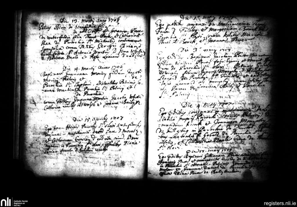 St. John's, Waterford city; County of Waterford; Diocese of Waterford and Lismore. Baptisms, Marriages, Mar. 1706 to May 1707