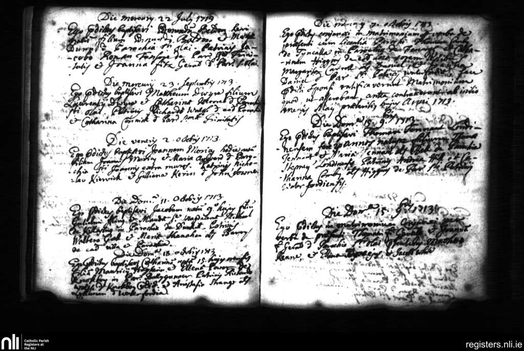 St. John's, Waterford city; County of Waterford; Diocese of Waterford and Lismore. Baptisms, Marriages, July 1713 to Nov. 1713