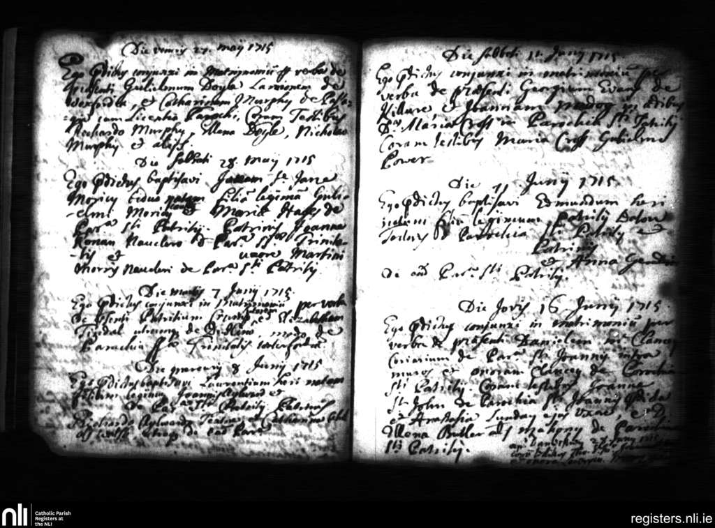 St. John's, Waterford city; County of Waterford; Diocese of Waterford and Lismore. Baptisms, Marriages, May 1715 to June 1715