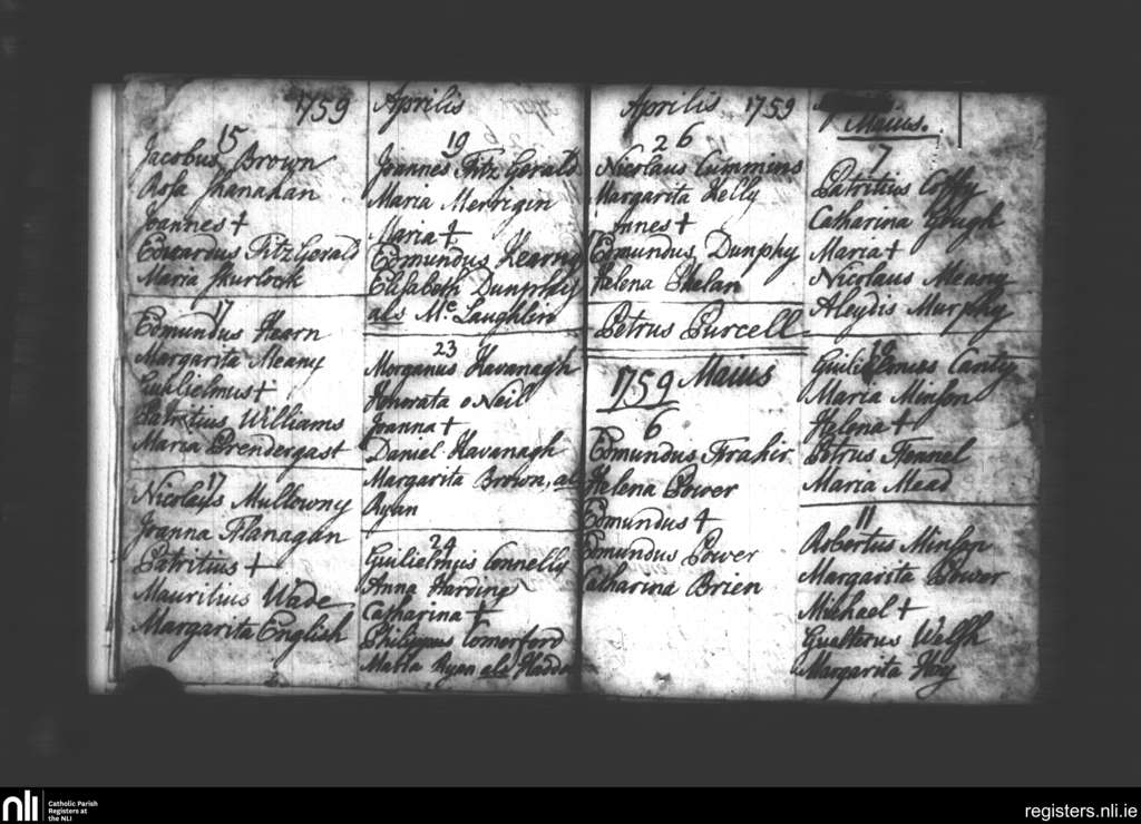 St. John's, Waterford city; County of Waterford; Diocese of Waterford and Lismore. Baptisms, Apr. 1759 to May 1759