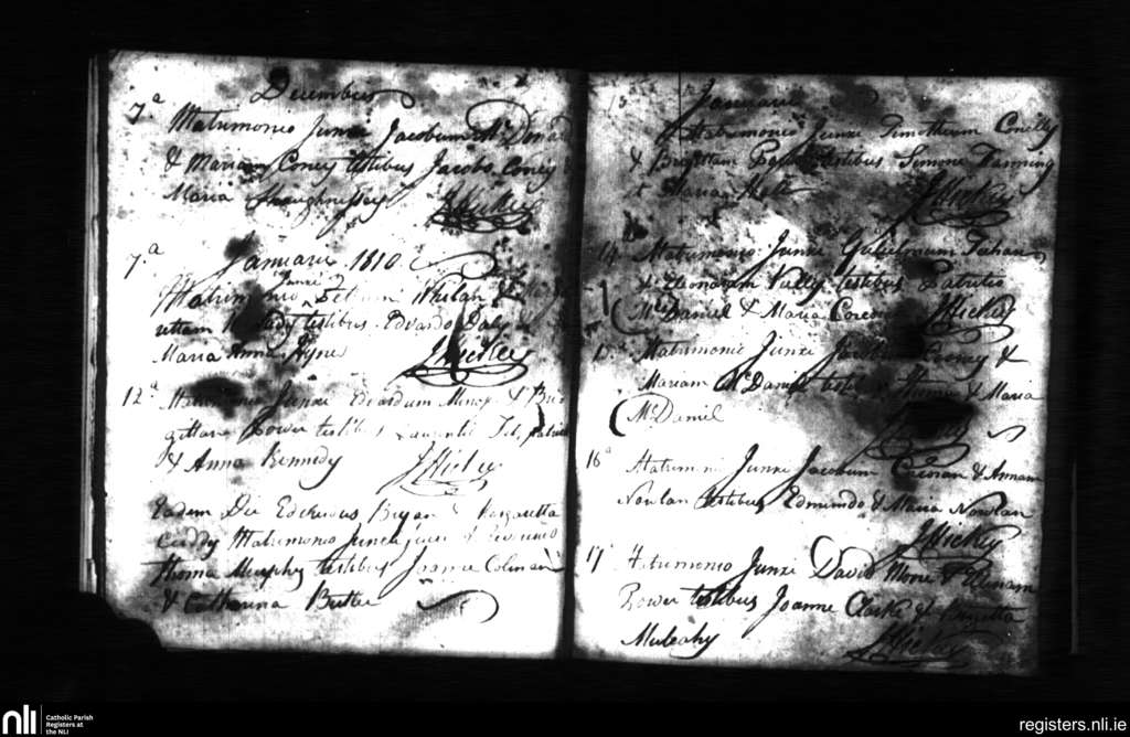 St. John's, Waterford city; County of Waterford; Diocese of Waterford and Lismore. Marriages, Dec. 1809 to Jan. 1810