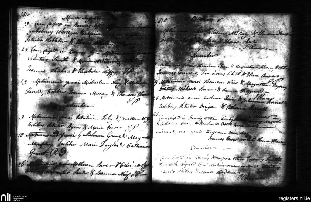 St. John's, Waterford city; County of Waterford; Diocese of Waterford and Lismore. Marriages, Aug. 1810 to Dec. 1810