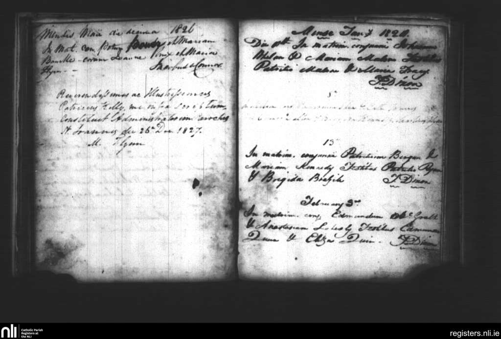 St. John's, Waterford city; County of Waterford; Diocese of Waterford and Lismore. Marriages, Jan. 1826 to Feb. 1828