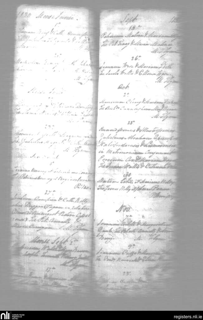 St. John's, Waterford city; County of Waterford; Diocese of Waterford and Lismore. Marriages, June 1830 to Nov. 1830