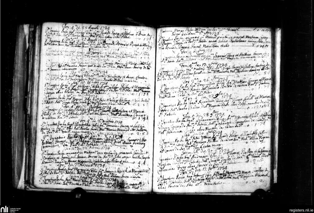 St. Patrick's and St. Olaf's, Waterford city; County of Waterford; Diocese of Waterford and Lismore. Baptisms, Marriages, Aug. 1734 to Dec. 1734