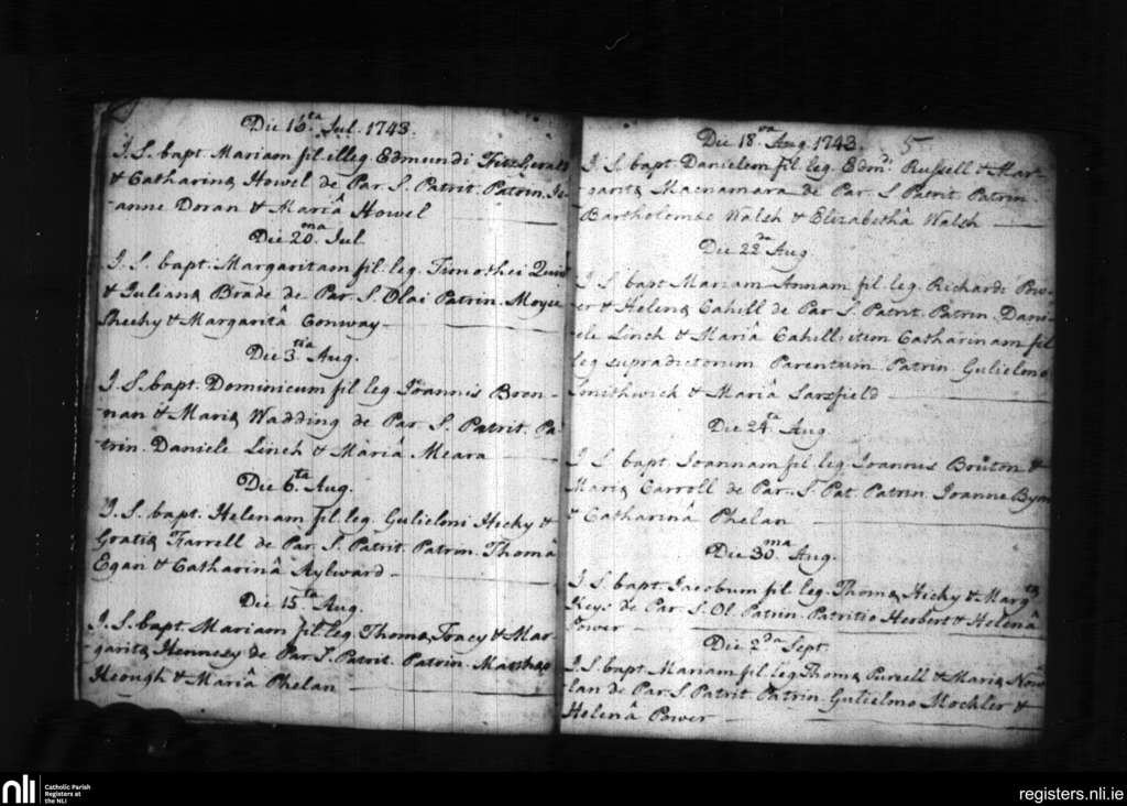 St. Patrick's and St. Olaf's, Waterford city; County of Waterford; Diocese of Waterford and Lismore. Baptisms, July 1743 to Sep. 1743