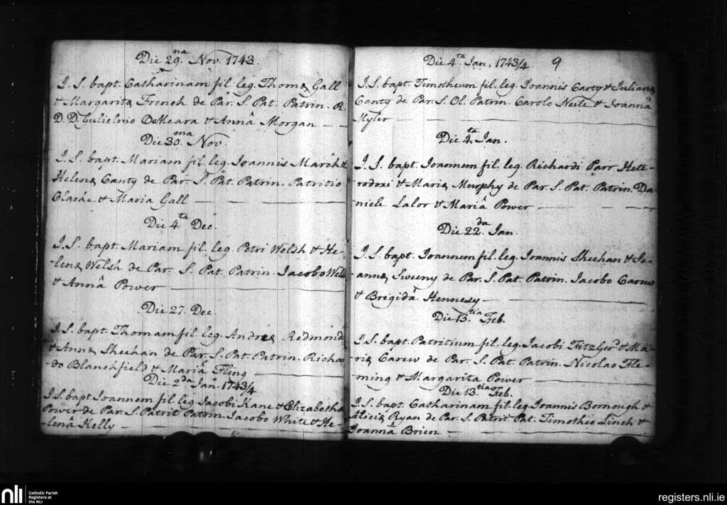 St. Patrick's and St. Olaf's, Waterford city; County of Waterford; Diocese of Waterford and Lismore. Baptisms, Nov. 1743 to Feb. 1744
