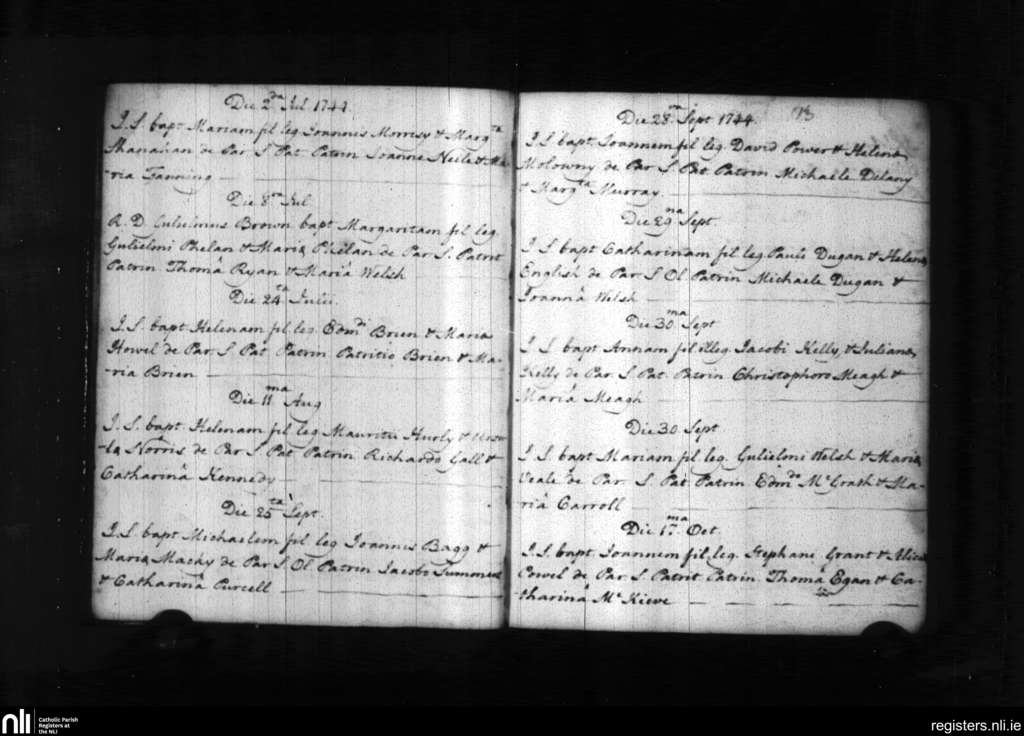 St. Patrick's and St. Olaf's, Waterford city; County of Waterford; Diocese of Waterford and Lismore. Baptisms, July 1744 to Oct. 1744