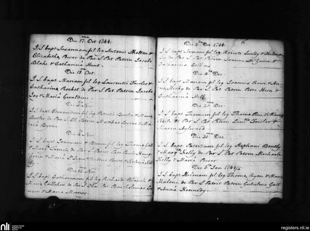 St. Patrick's and St. Olaf's, Waterford city; County of Waterford; Diocese of Waterford and Lismore. Baptisms, Oct. 1744 to Jan. 1745