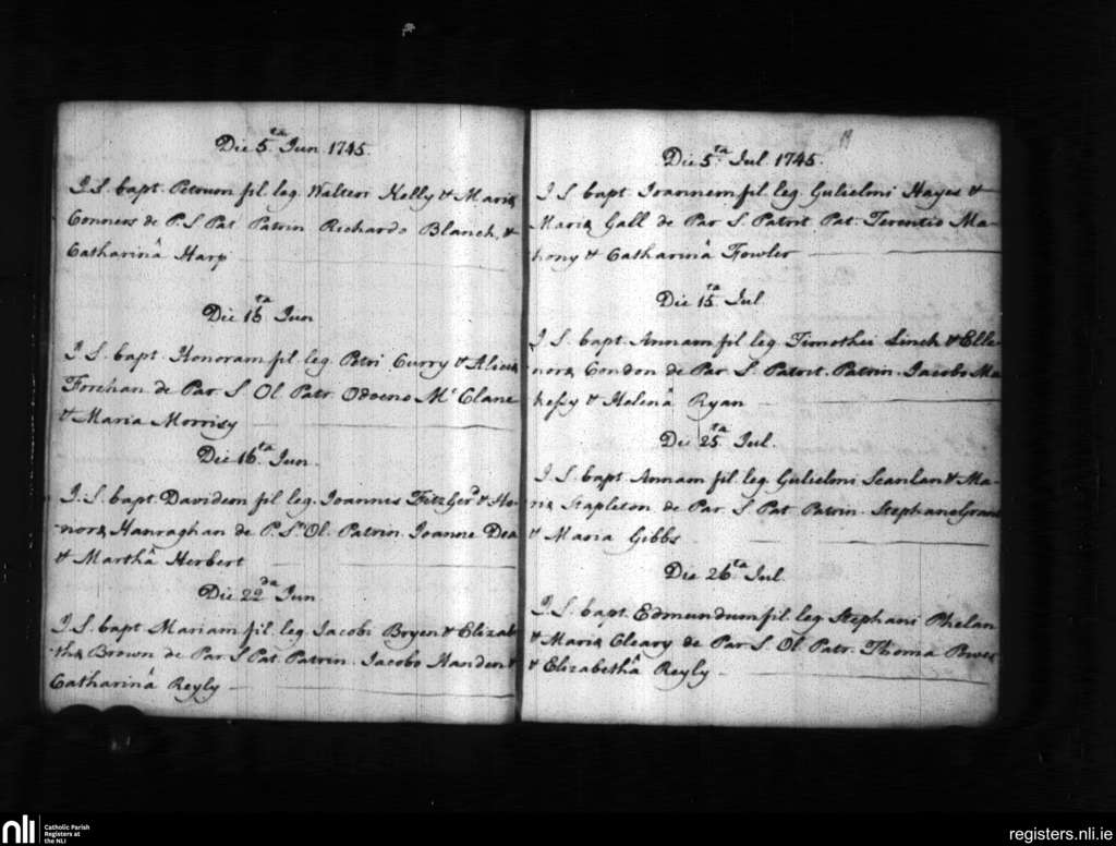 St. Patrick's and St. Olaf's, Waterford city; County of Waterford; Diocese of Waterford and Lismore. Baptisms, June 1745 to July 1745